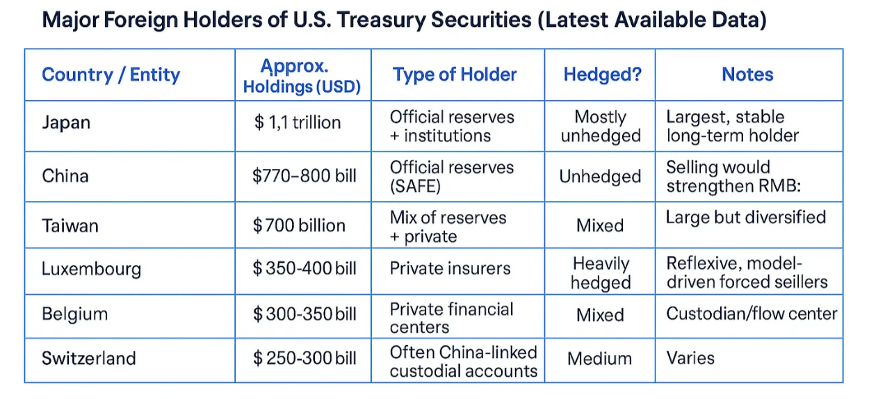 Taiwan’s private financial structure behaves less like a traditional creditor and more like a set of giant margin accounts, capable of transmitting a political shock from China directly into the US bond market.