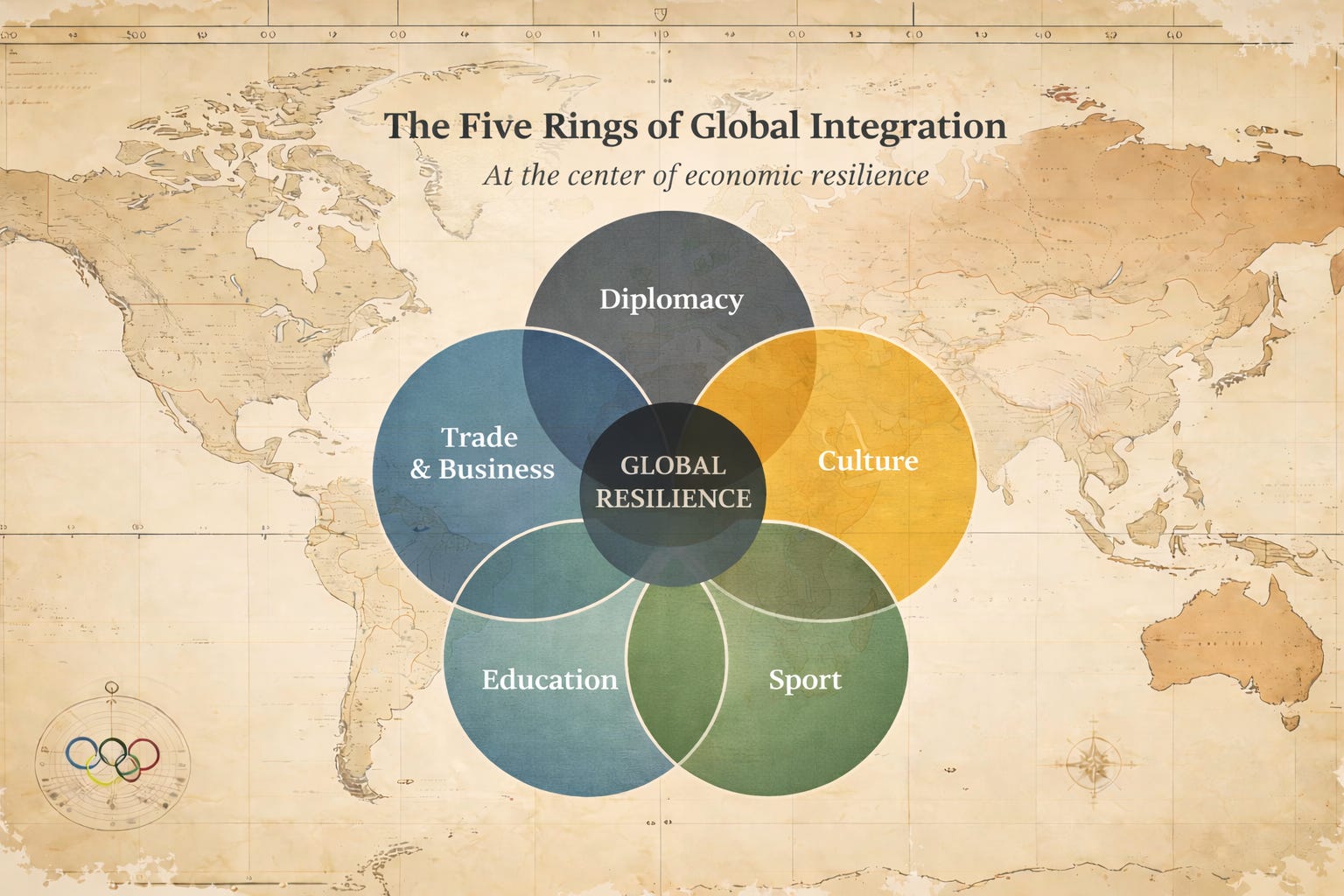 In economic terms, the spirit of the Olympic rings parallels how countries build trust and minimize transactional frictions to expand the global opportunity set.